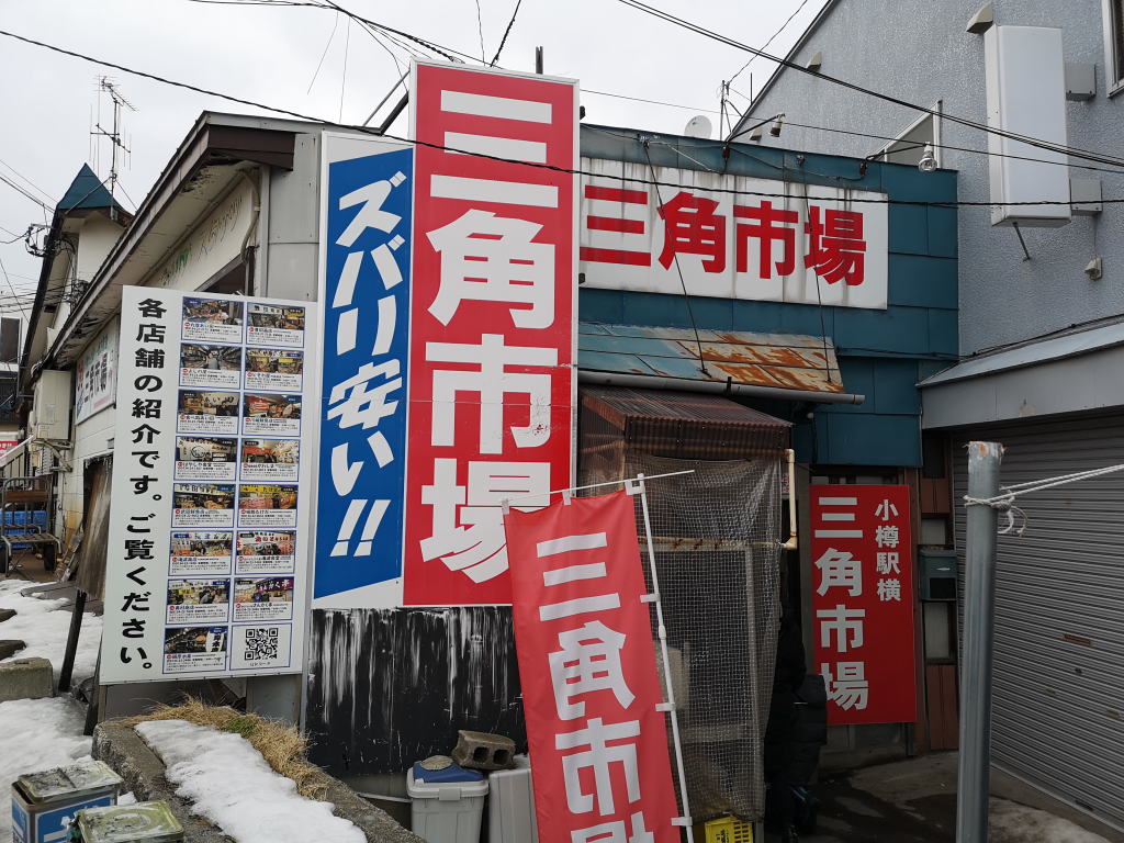 駅のすぐ近くに「三角市場」という人気の市場があります。