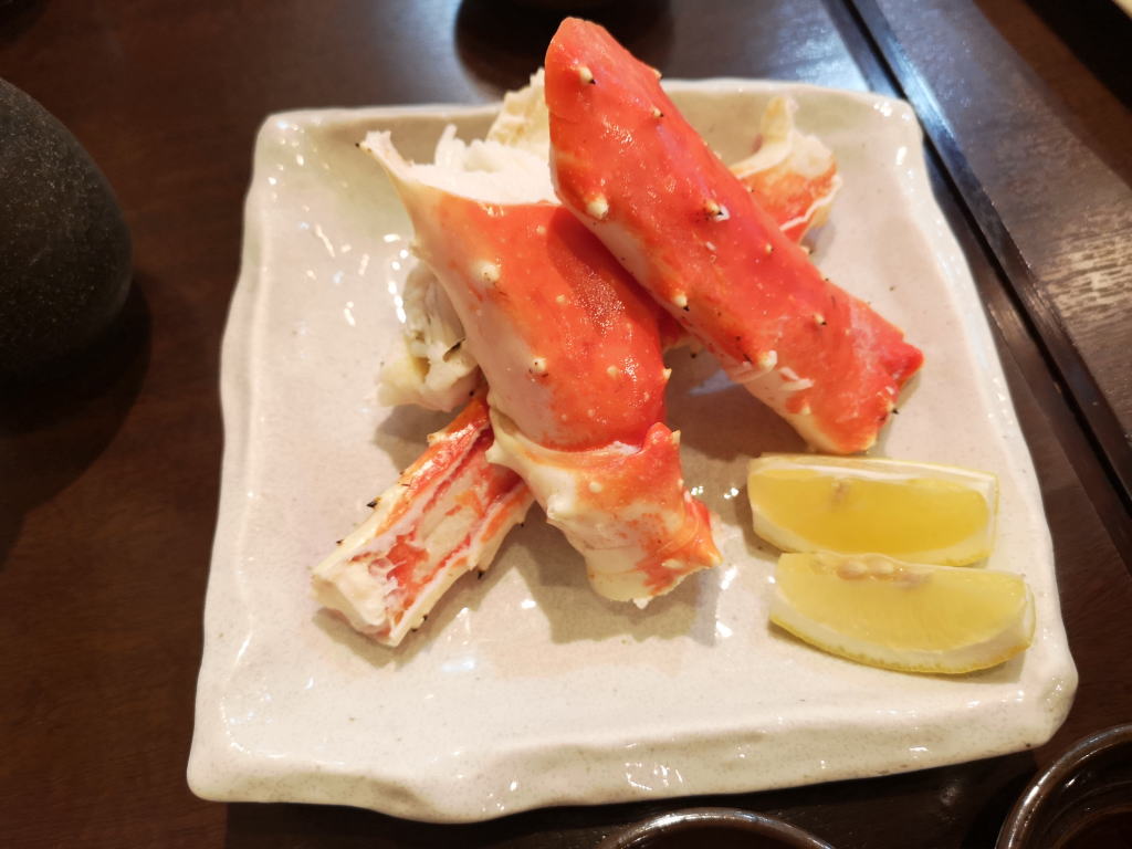 大きなタラバガニの足が出てきました。食べ応えがあります。茹でたては美味しいです。