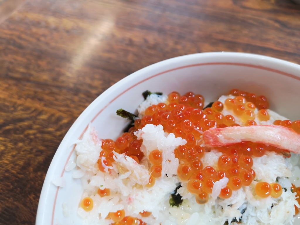 カニ肉とイクラの乗った、ルビークラブ丼を頂きました。
