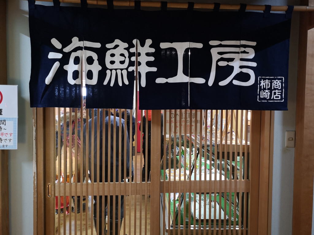 まずは、駅前に柿崎商店という市場があり、そこの二階に「海鮮工房」というお食事処があります。