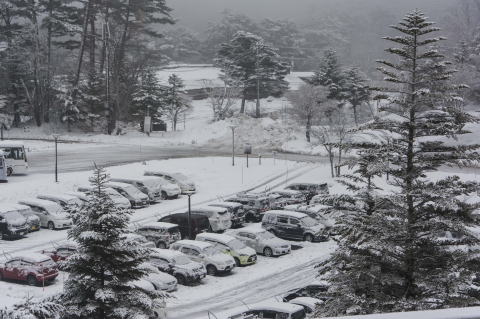 駐車場の雪の上を走ってみましたが、4WD+スタッドレスのおかげで、全く普通に走れることを確認できました。これを確認したい為に、ここまで来たんですけどね。