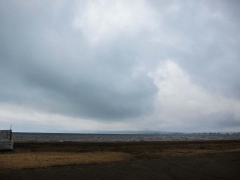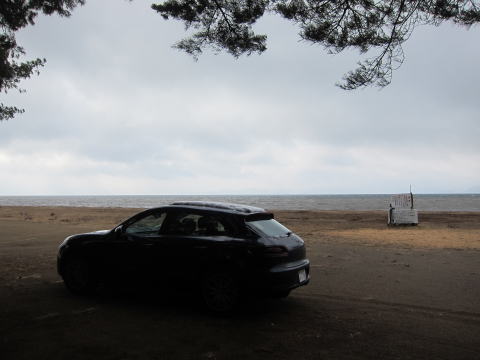 このホテルは、桧原湖のそば。せっかくなので、猪苗代湖を見に行ってみることに。猪苗代湖はここより標高が低いのですね。しばらく走ると雪が無くなってしまいました。