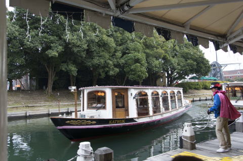 園内の水路を走る舟にのります。