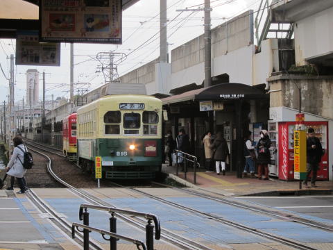 築町から5番系等の路面電車に乗り、大浦海岸まで行きます。ここで昼食の予定。