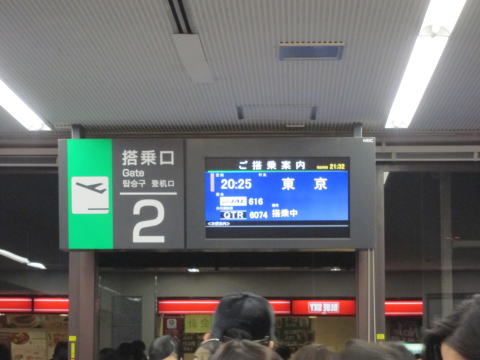 20時25分発の予定でしたが、なんと東京からくる飛行機が遅れ出発が1時間10分遅れ。