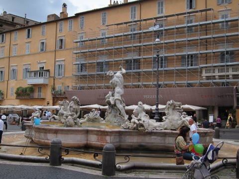 ここは元々競技場だったそうで、楕円形というか、長円形(陸上競技のトラックのような形)をしている。噴水のそばのジェラート屋さんでジェラート購入。ストロベリーとヨーグルトのミックス。1カップで5ユーロはちょっと高い?観光地料金か?