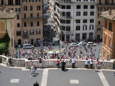 その後一人で、スペイン広場へ。トレビの泉からはまっすぐと言われていたのに、道を間違ってしまった。途中で気づいて、Uターンし、スペイン広場の階段の上に出た。
