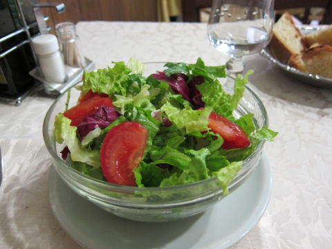 駅の近くのレストランで夕食。料理の量がわからず、サラダ、パスタ、ピザを頼んだら、死にそうに量が多かった。味は良かったですが。