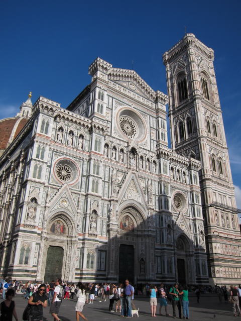 建物がどれもすばらしい。ドゥオーモや、ジョットの鐘楼など、写真で見ていた時にはあまり素晴らしいとは思わなかったのだが、実物を見ると本当に素晴らしい、というか凄い。圧倒されました。