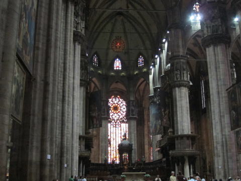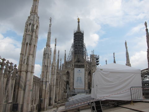 早々に市内見学。まず、ドゥオーモを目指す。地下鉄を出ると目の前にそびえている。圧巻。だが、この地下から出てきて大きな建物に圧倒される感じは、パリの新凱旋門の方がすごかった気がする。あちらは、突然未来都市に来たような驚きがあった。