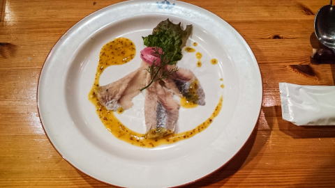 鰊の酢漬けです。鰊はあまり得意ではないですが、周りのマスタードソースの味も良く、美味しく頂きました。