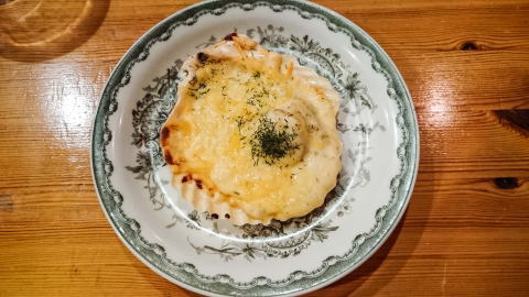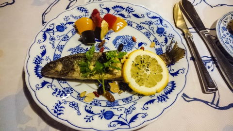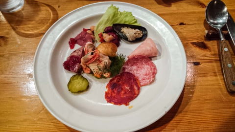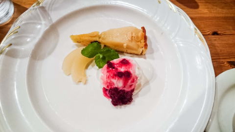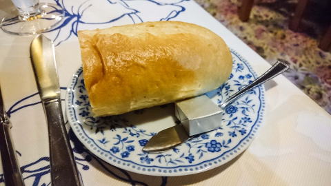 ペンションは朝食のみの予約だったのですが、今日は特別に別料金で夕食を用意してもらいました。宿泊しているペンションは、オーベルジュというだけあって、食事はフランス料理がコースで提供してもらえます。