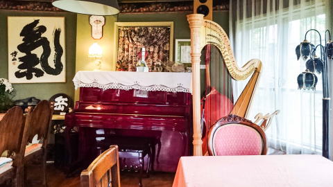 ここはハープを中心としたセラピーやプライベートコンサートも行われる大変素敵な場所でした。