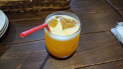まずはドリンク。フロリダという名前のオレンジとレモンのジュース。