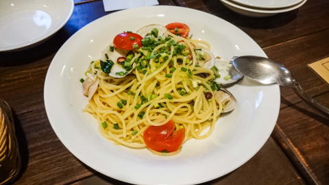 ハマグリと青ネギのスパゲティ。これもハマグリの出汁が出ていて美味しいです。
