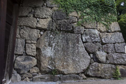 東虎口櫓門の石垣にある、真田石。デカイ。高さ約2.5m・横約3mの大石.真田昌幸が築城の折り柱石として据えたものと伝えられ真田石と呼ばれている.真田信之が松代へ転封に当たって父の形見に持ち運ぼうとしたが、大勢の人の力をもってしてもびくとも動かなかったと伝えられる。
