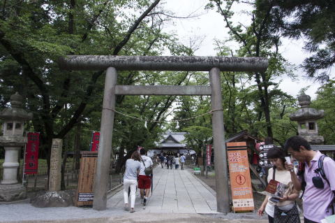 上田城本丸跡に鎮座するこの神社は、真田氏、仙石氏、松平氏という歴代の上田城主を御祭神としています。しかし、もともとは松平家の御先祖をお祀りする御宮であり、松平(しょうへい)神社と称していたそうです。