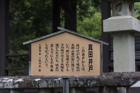 この真田井戸はなんと抜け穴になっており、上田城の北、太郎山麓の砦につながっていたという伝説があります。 第二次上田合戦で上田城が包囲された時、この抜け穴から兵糧を城内に運び込んだり、またこの井戸から徳川軍の背後に出て奇襲を行ったりしたそうです。