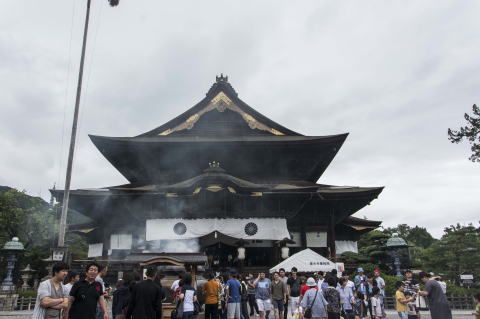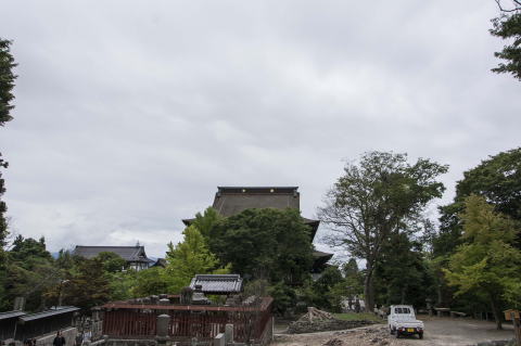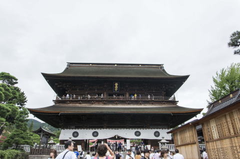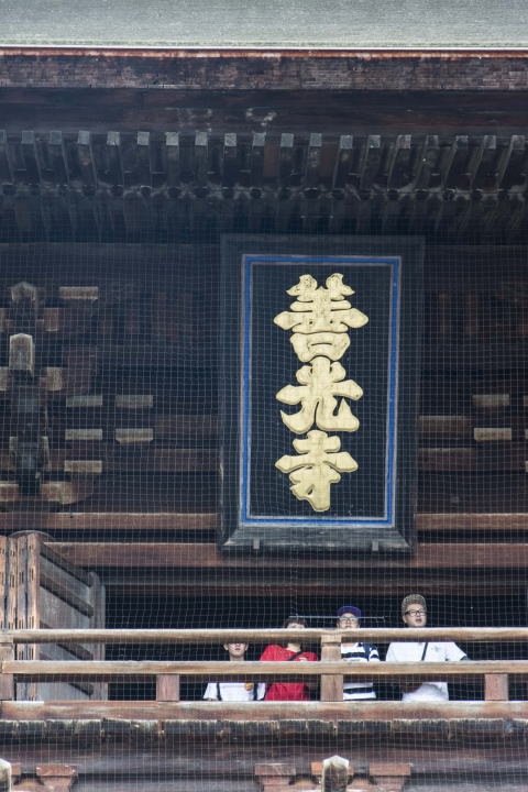 高速には乗らず、下道をゆるゆると進み、善光寺到着。善光寺の周りには駐車場が沢山ありますが、さすがにお盆の時期、どこも混んでいます。うろうろとして結局第1駐車場へ。ここは、善光寺の裏にあたります。なので、ここから善光寺へ行くと、参道を通らず、直接本堂についてしまいます。