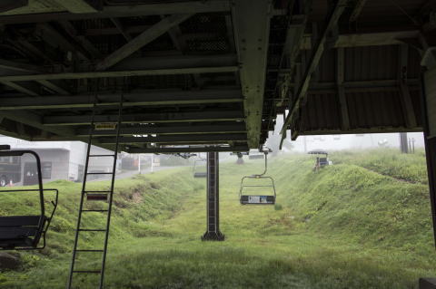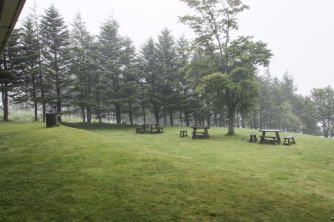リフト乗り場の隣にあるレストラン裏の庭。芝生が広がり綺麗です。天気がよければ・・・。