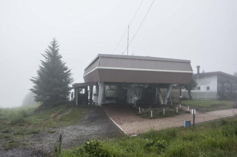 山頂まで行くには、リフトを乗り継ぎますが、この天気なので、中腹までで十分。