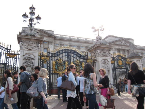 しばらく公園のようなところを歩いて行くとバッキンガム宮殿が見えてきた。宮殿の前は、観光客でいっぱいだ。