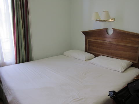 ホテル、部屋が狭い。上の部屋の足音が聞こえる。廊下を人があるくと部屋が揺れる。部屋の中でスーツケースを開ける場所が無い。シャワーはOK。インターネットは24時間で10ポンド。一応頼んだ。