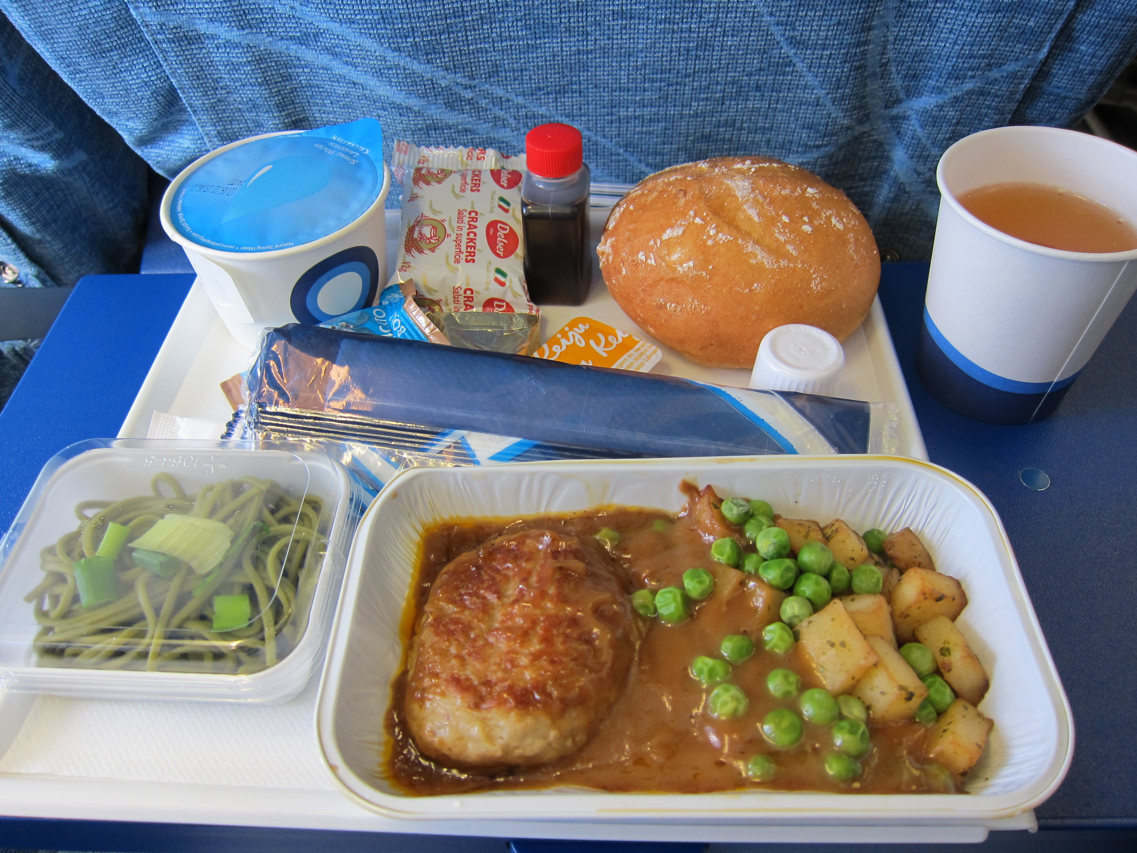 さて、ヘルシンキへ向けて搭乗。しばらくすると、昼食が配られた。なんとさっき食べたサンドイッチと同じ。(中身は違ったが)。さっき食べたばかりなのにと思ったが、時計を見ると12時を回っているので、確かに昼食の時間だ。がまんして食べた。