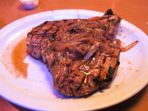 オーダーは、せっかくなので、Tボーンステーキ。23オンス。グラムに直すと650グラム程。焼き方はミディアム・レア、ソースはオニオンのグレービーソース。付け合せは、マッシュポテトとグリーン・ビーンズ。