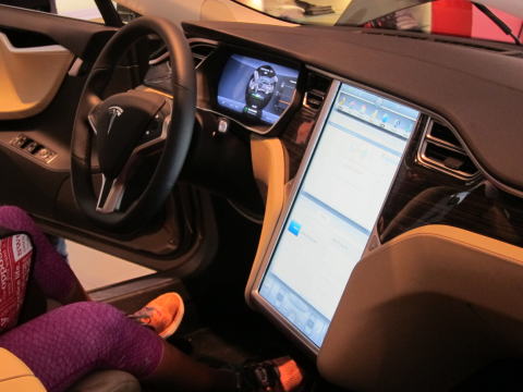 特に買うものは無かったのですが、お店を散策。モール内に電気自動車のTESRAのディーラーがあったので、ちょっと覗いてみました。