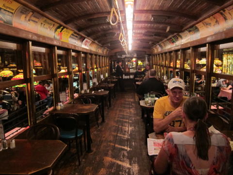 そして、なんと店内に電車が1両。電車の中にもテーブルがあり、そこで食事ができます。私も電車内に案内してもらえました。