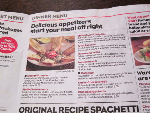 さて、今日の夕食は、コロンバス市内にあるスパゲティ・ウェアハウスというお店へ。