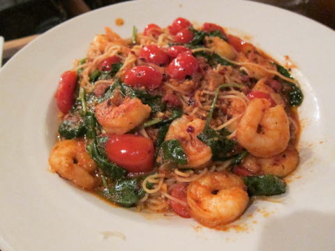 オーダーしたのは、クラシック・シーザーサラダ、カラマリ、スパイシーシュリンプスパゲティ。サラダとカラマリは美味しかったですが、肝心のスパゲティが物凄い細麺。カッペリーニです。なので、ソースは良くからまりますが、アルデンテというわけはなく、素麺の様でした。まあこれも経験ですね。
