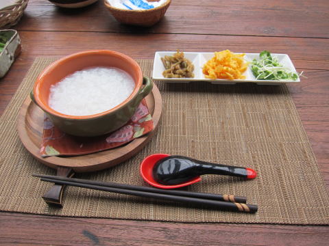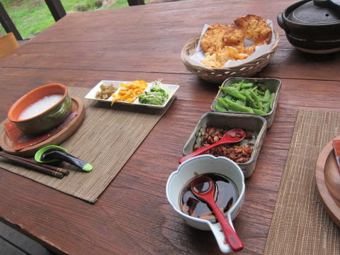 まずは、ペンション「マハリクハウス」で朝食。バリ風のお粥を作っていただきました。