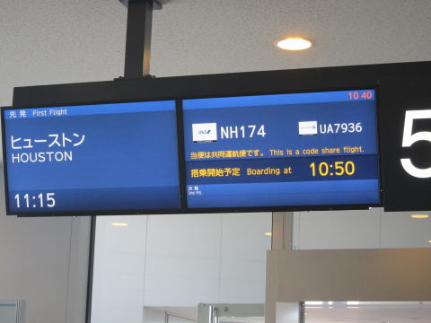 荷物を預け、全日空、乗り継ぎのUA分も合わせてチェックイン完了。