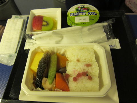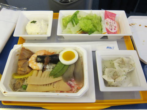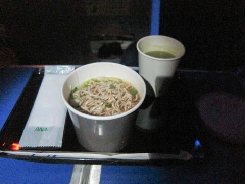 その後順調に飛行し、夜食にお蕎麦を頂いた。