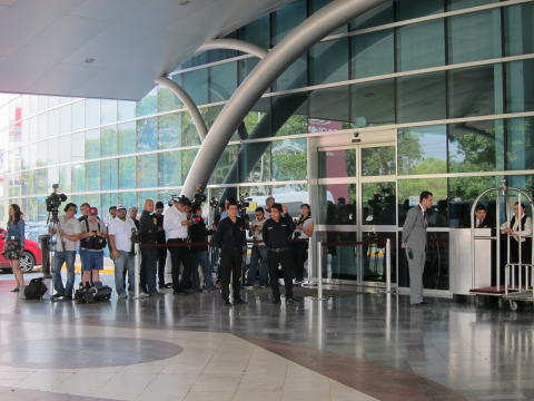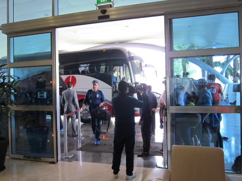 荷物を部屋に置き、仕事に出ようとロビーへ出たら、黒山の取材陣。何事かと思っていたら、結構有名なサッカーチームがこのホテルに宿泊するために到着する所だったらしい。