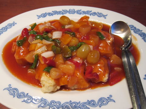 7品目:白身魚のフルーツ甘酢あんかけ