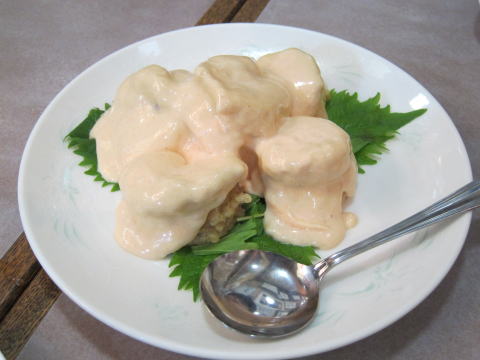 本当に大きな海老。マヨネーズソースの味も良いです。