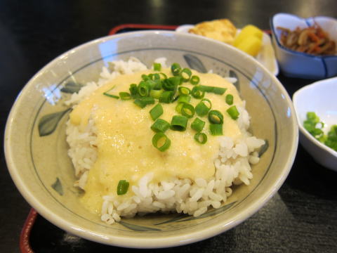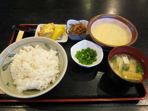 麦ごはんに、とろろ、その他、お味噌汁、卵焼き、たくあん、きんぴらごぼうです。