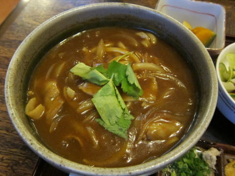 まずは、カレーうどんを頂きます。カレーは結構濃厚。味も結構スパイシーです。