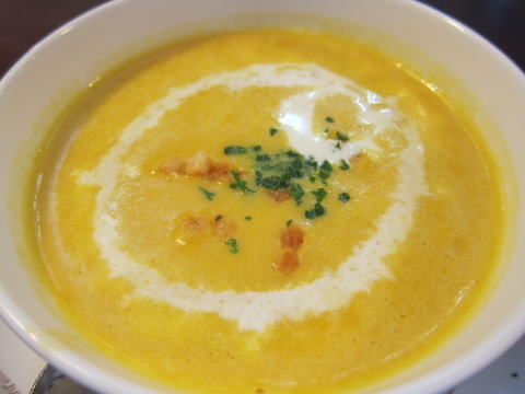 スープは、カボチャのポタージュ。ちゃんと器も温められているようです。