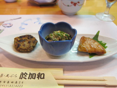 次に、変わった天ぷら。梅の天ぷらです。この梅は秦野の地のものだそうです。