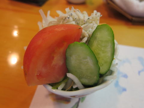 サラダは写真では分かりにくいですが、大根サラダで、上にシラスが乗っています。