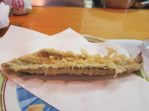 さて、天ぷらの登場です。いきなりアナゴの天ぷらが出てきました。