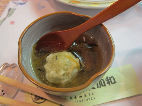 サラダを食べ終わる頃、茶碗蒸しが出てきました。