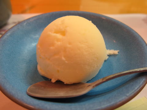 さて、一通りお食事が終わると、デザートにゆずシャーベットです。