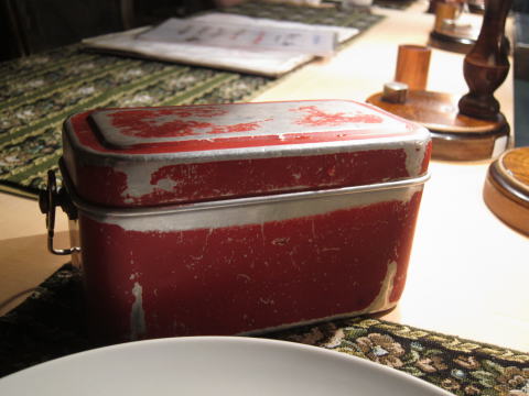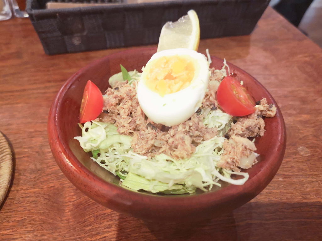 ご飯は例によって飯盒で出てきます。まずはレギュラーセットのサラダが出てきました。