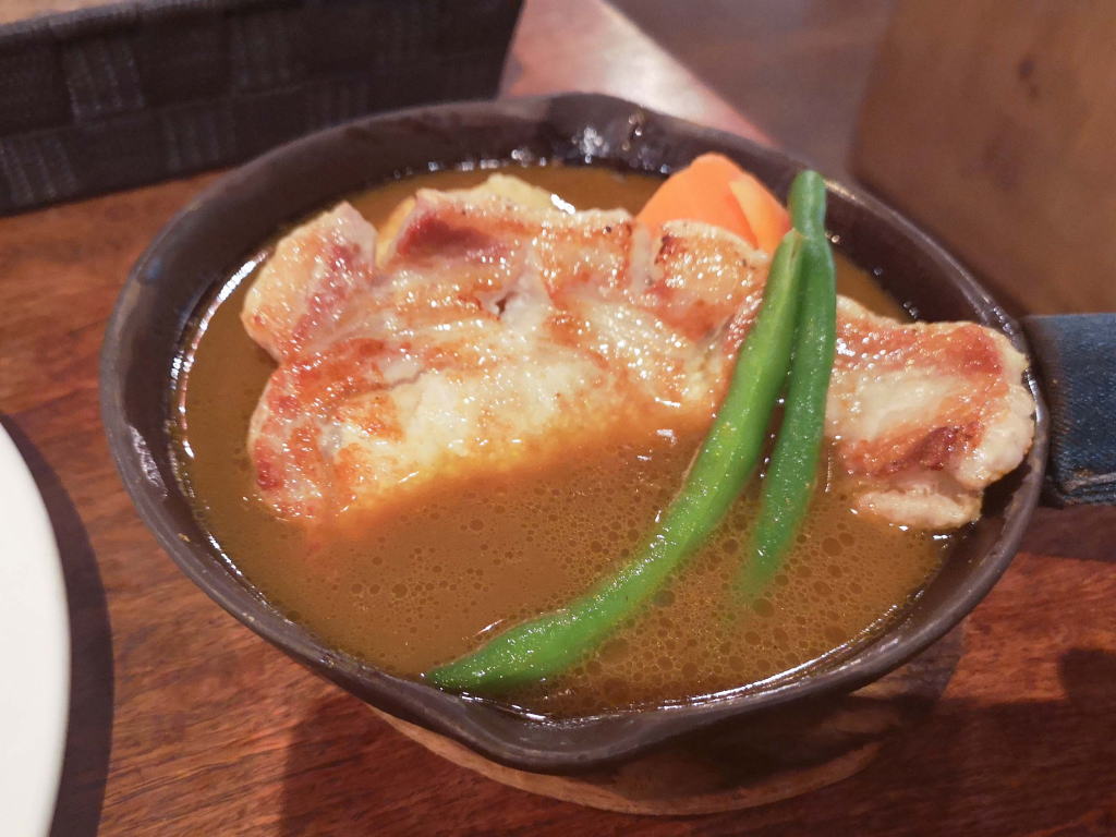 若鳥のカレーなので、大きなグリルチキンが入っています。