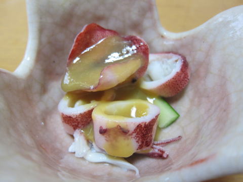 まずはお通し。ホタルイカとキュウリの酢味噌和え。しょっぱなから美味しい。